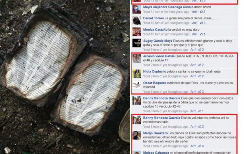Tras una terrible tragedia ocurrida en Colombia, en la que 32 niños que asistÃan a la escuela dominical de una iglesia pentecostal murieron incinerados y 16 resultaron heridos en el bus que los trasportaba, un grupo de creyentes resaltaron el hecho que una biblia no se quemó completamente.