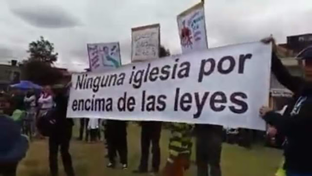 La evidencia: El inicio del plantón está registrado en un vÃdeo y se ve que es hecho en el parque, nunca en la iglesia. No hay gritos o arengas contra el Papa o el Obispo. La siguiente fotografÃa muestra la pancarta frontal del plantón.