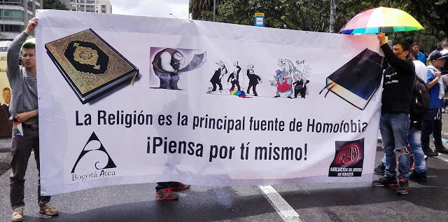 Este vÃdeo del canal de Bogotá Atea hace una compilación que sustentó su mensaje que "la religión es la principal fuente de homofobia", el cual fue presentado en la marcha del pasado 3 de julio.