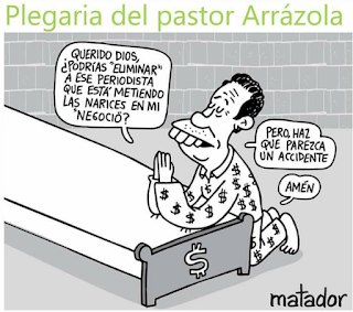 - Miguel Arrázola, pastor de la Iglesia RÃos de Vida, amenazando al periodista Lucio Torres que reveló los millonarios ingresos del pastor y su familia.