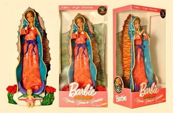 La exposición también incluyen otras piezas que representan a Jesús, incluido uno de él como un muñeco «Ken», asà como imágenes de otras religiones, asà como una «Barbie Virgen MarÃa» y su compañero «Ken» crucificado.