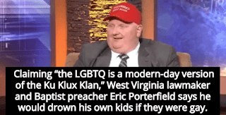 "El LGBTQ es una versión moderna del Ku Klux Klan, sin usar capuchas con sus payasadas de odio", dijo Porterfield en una entrevista el viernes 8 de febrero por la mañana. También llamó a la comunidad gay un "grupo terrorista" y dijo que la comunidad gay lo está "persiguiendo" en represalia por sus comentarios.
