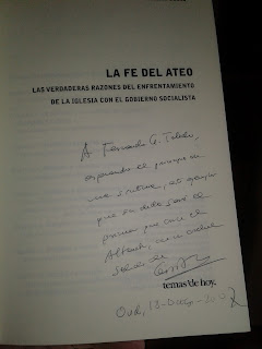 | Dedicatoria de Gustavo Bueno al autor de este artÃculo, en un ejemplar de La fe del ateo |