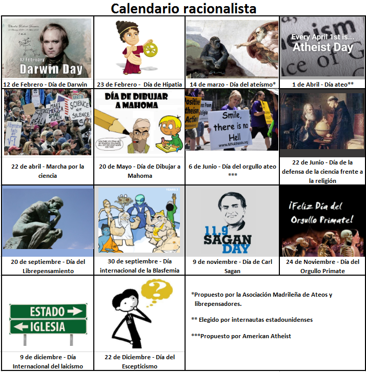 DÃa de Darwin, 12 de Febrero. Es el aniversario de Charles Robert Darwin. naturalista británico que documentó diferentes evidencias a favor de la evolución biológica, y que, junto con Alfred Wallace postuló la selección natural como mecanismo evolutivo. El movimiento organizado para establecer esta celebración anual comenzó con el Dr. Robert Stephens, quien motivó a la comunidad humanista del Silicon Valley en California a celebrar el primer "Darwin Day" en 1995. El profesor Massimo Pigliucci inició la celebración en Universidad de Tennessee en 1997. Desde entonces la celebración se hace en muchos departamentos de biologÃa, museos y organizaciones seculares alrededor del mundo.
