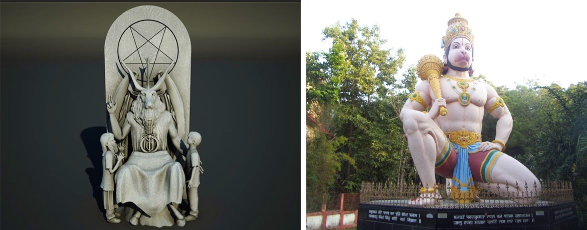 La idea de tener una imagen del dios mono al frente del Capitolio estatal desdibujó las sonrisas de evangélicos que estaban contentos con la idea del representante Ritz. Aunque su sorpresa fue mayor cuando el Templo Satánico, con sede en Nueva York, empezó el diseño y construcción de una imagen de Lucifer sentando en un trono con la estrella de cinco puntas. La imagen en proceso tenÃa también las esculturas de un par de niños al lado de su satánica majestad.