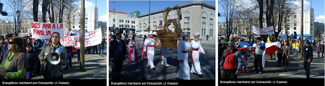 “¡Defiéndeme Jesús!, ellos votan por leyes que destruyen a la familia como Dios la estableció. Estos senadores no escuchan a la Iglesia, rechazan la palabra de Dios y destruyen la familia como la Biblia lo establece†dice el cartel que los evangélicos han puesto en la ciudad chilena de Concepción.