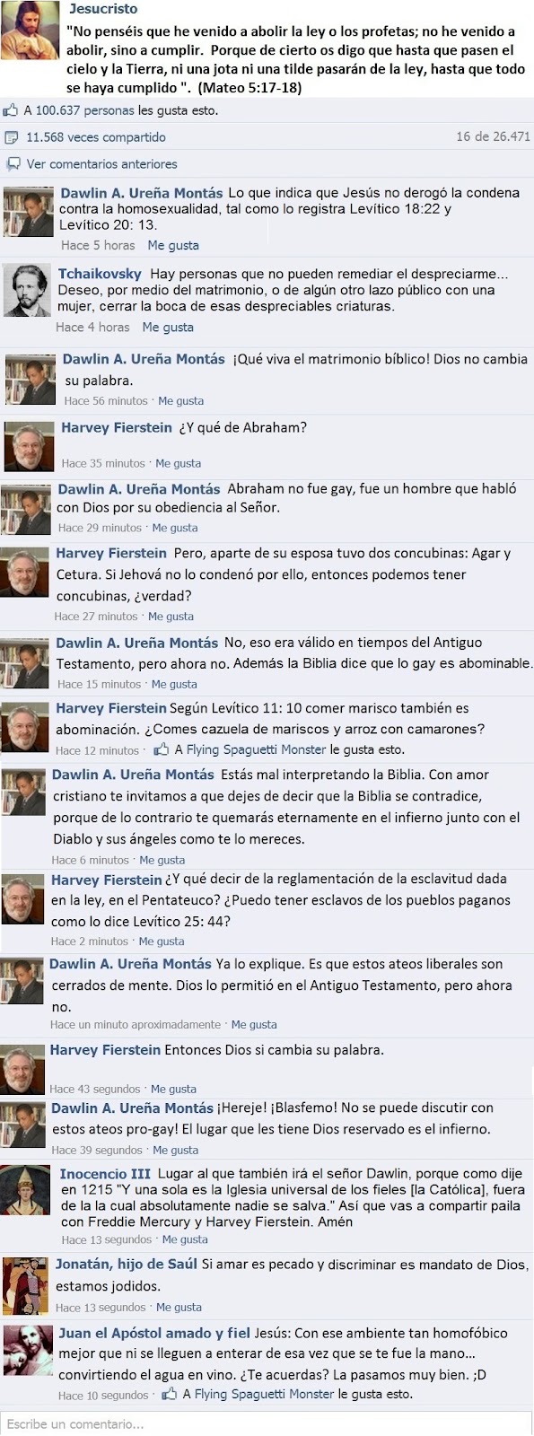14 de April del 2012  Blogs colaboradores, Harvey Fierstein, homofobia, humor, matrimonio homosexual, Papa Inocencio III, Pastor Dawlin Ureña