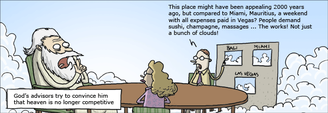 Los asesores de Dios intentan convencerle de que el cielo ya no es competitivo.