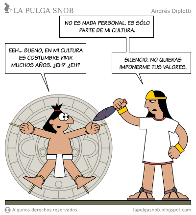 Es el problema con ciertos valores, que alcanzan mucho más allá de donde terminan los tuyos. Es una magnífica viñeta de Andrés Diplotti para La pulga snob.