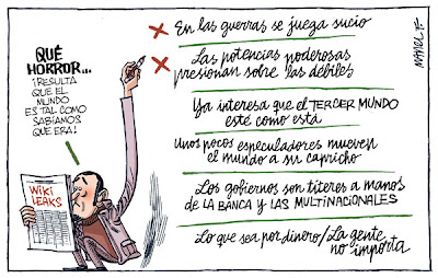 Gracias a las huestes de Assange, ahora sabemos que el mundo es exactamente como sospechábamos que era. Viñeta de Manel Fontdevila.