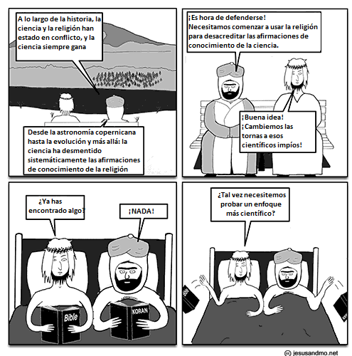 Traemos una nueva caricatura de Jesus and Mo. En esta ocasión sobre el conflicto de ciencia y religión.