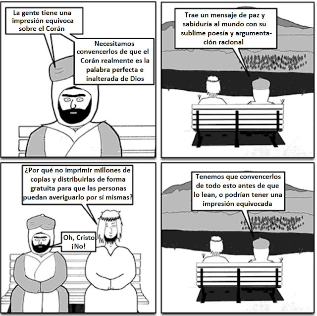 Una nueva caricatura de Jesus and Mo en castellano. Esta vez sobre la veracidad del Corán.