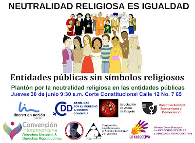 Diferentes ONG colombianas, incluyendo dos organizaciones de ateos, solicitan a la Corte Constitucional de Colombia que se retire el crucifijo de su Sala plena para garantizar la neutralidad estatal en asuntos religiosos.