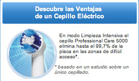 Así pues, si queremos salir de dudas necesitamos conocer el dato de cuanta placa elimina un cepillo manual. Al mismo tiempo no estaría de más saber como es el estudio en el cual concluyen que su nuevo cepillo elimina un 100% más de placa que el cepillo manual. Accedemos a la web de oral-b España, volvemos a encontrar el mismo reclamo publicitario pero no hay referencia a ningún estudio de donde hayan sacado el dato, y en el cual pudiéramos aclarar nuestras dudas. No obstante, encontramos la siguiente afirmación para otro cepillo de los que fabrican: