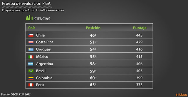 | Curiosamente, entre más religioso el paÃs peor es el rendimiento estudiantil en Ciencias Resultados de prueba PISA 2012 Tomado de EducaLab ![]() |