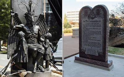 Para aquel entonces algunos evangélicos ya no encontraron interesante la idea que se pusiera un monumento dirigido a un dios diferente a Jesús. Pero para hacer mayor su sorpresa llegó la propuesta de "Templo Satánico", una organización catalogada como religión paródica (en realidad esta organización no cree en el Diablo) que propuso donar una escultura de Baphomet sentando en un trono con la estrella de cinco puntas y acompañado de niños.