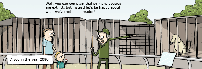 «Bien, podrÃamos quejarnos del hecho de que tantas especies se hayan extinguido. Pero celebremos en su lugar lo que tenemos hoy; ¡un labrador!»