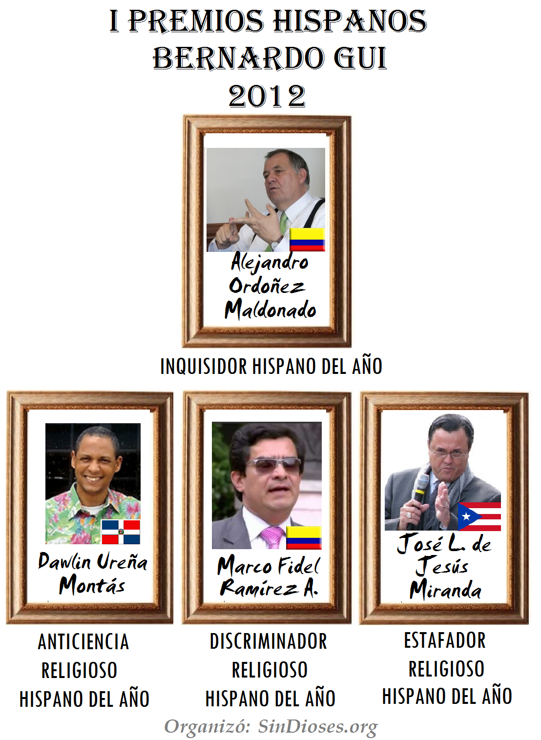 El Procurador de Colombia, Alejandro Ordoñez Maldonado se hizo con la categoría principal del premio. Ordoñez ha utilizado su puesto como público para intentar imponer su visión católica a su país. Su cruzada contra el aborto en los casos en los cuales es legal, el misoprostol, y los derechos de las parejas del mismo sexo, así como el pasado caso de la quema de libros de filosofía de un biblioteca pública lo han hecho merecedor de este galardón.