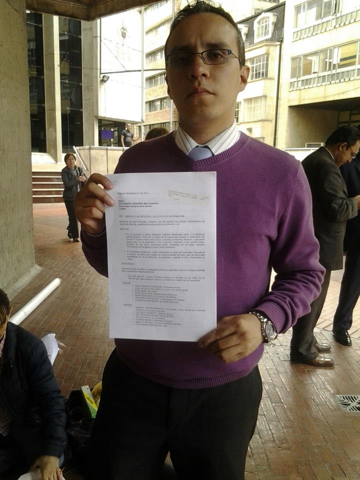"Un grupo de manifestantes se agolparon en las instalaciones de la Procuraduría General, en el centro de Bogotá, para solicitarle al jefe del Ministerio Público, Alejandro Ordóñez que pida perdón de manera pública por la quema de libros que protagonizó hace más de 30 años en la ciudad de Bucaramanga cuando era un estudiante.El representante de la Asociación de Ateos y Agnósticos de Bogotá, Ferney Yesid Rodríguez explicó que este martes se presentará un derecho de petición para que el Procurador General reponga los libros que quemó de la biblioteca pública Gabriel Turbay, ubicada en la capital de Santander.
