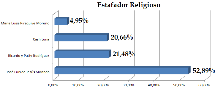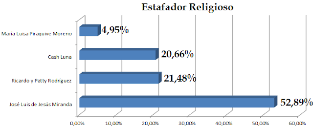 El autodenominado "Jesucristo hombre", José Luis de Jesús Miranda, con su transformación en inmortal radioactivo se llevó el galardón como estafador religioso del mundo hispano en 2012. Sus sonadas e incumplidas profecías ayudaron a que sobrepasara en votación a pesos pesados de la teología de la prosperidad y su inmenso caudal de diezmos. Actualmente el líder de la Iglesia Creciendo en Gracia se encuentra desaparecido, y muchos de sus seguidores siguen creyendo en él.