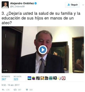 "¿Dejaría usted la salud de su familia y la educación de sus hijos en manos de un ateo?"