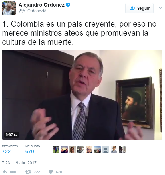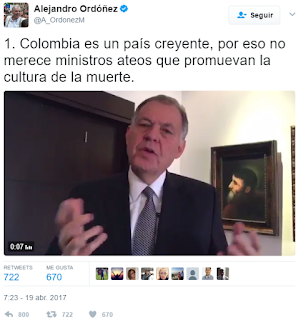 - Alejandro Ordóñez, precandidato presidencial de Colombia atacando a los ateos y al Ministro de Salud Alejandro Gaviria.