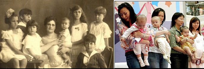 Izquierda: Ateas chinas con sólo un hijo (la ubicación a la izq. no es casual).