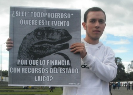 Se ha dicho que el lÃder de la Iglesia Católica vendrá a Colombia y en su visita se destinarán dineros públicos. Algunos funcionarios del Estado han justificado este gasto del erario diciendo que es por la paz de Colombia, que Francisco vendrá a orar por la paz. En ese orden de ideas, ¿no deberÃan traer al paÃs también para orar por la paz al Presidente de los mormones, al de los adventistas, al Dalái Lama o al fundador del pastafarismo.? ¿Por qué desde los actos simbólicos se sigue privilegiando, exaltando y colocando en primer rango al catolicismo?