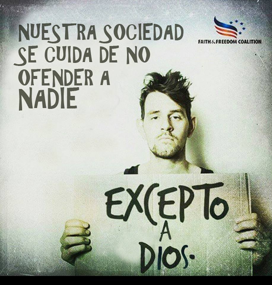 "Nuestra sociedad se cuida de no ofender a nadie. Excepto a dios" dice un meme de la Coalición fe y libertad.