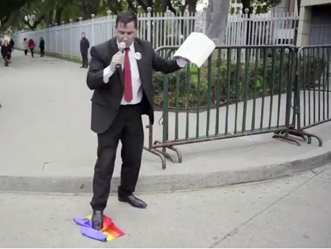 Javier Soto ha protagonizado actos violentos contra políticos que han votado proyectos que reconocen derechos a la población LGBTI. Tal como lo hizo una vez aprobada la ley de vida en pareja.