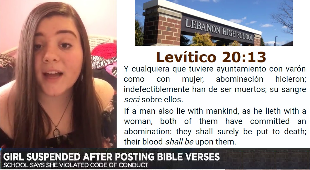 "La homosexualidad es un espÃritu perverso que ha existido desde el principio de la creación... No pretendo conocer todas las cosas. Ni puedo fingir no tener prejuicios, defectos o fallas. Pero sé que el pecado y se reproduce como el cáncer!".- Viki Knox, docente evangélica de Nueva Jersey, a quien se le analiza una posible suspensión por insistir en una escuela pública que la homosexualidad es "como el cáncer".