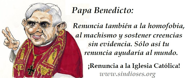 Bien podrÃa Benedicto ser un personaje propio del belen por sus "cagadas". Pero no propiamente por haber sacado a la mula y al buey del nacimiento, sino por sus recientes declaraciones en las que afirma que el matrimonio igualitario, la eutanasia y el aborto constituyen graves amenazas para la paz mundial.