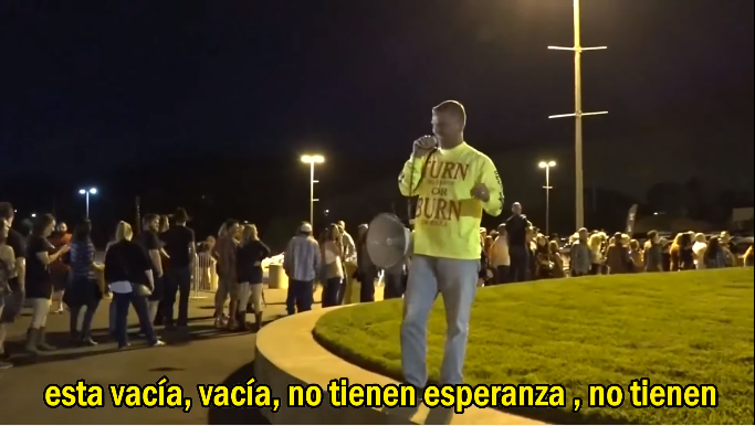 "No sé por qué los pastores no están hablando. Este es un símbolo de Dios, (el arcoiris) Este es un símbolo de Dios, y el Diablo lo pervirtió con seis colores. El símbolo de Dios es el siete. Y lo están usando para pervertir a la próxima generación. No entiendo, ¿por qué tenemos que estar sujetos a esto en los supermercados? (...)Entonces tenemos que levantarnos y luchar. Tenemos que empujar la justicia de Dios. El enemigo está empujando su oscuridad, su ideología enferma y pervertida. Y la Iglesia, parece que está en silencio, casi totalmente.