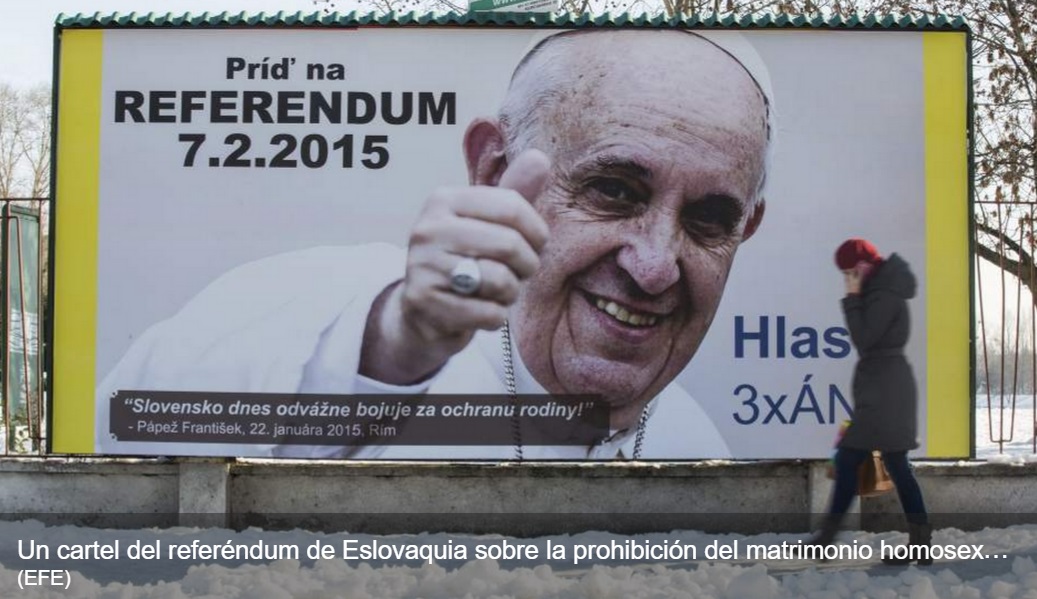 2. Alabó el papel de la lglesia Católica en el referendo de Eslovaquia. En este país la Iglesia hizo campaña en contra de la educación contra la homofobia, el matrimonio igualitario y la adopción homoparental. Afortunadamente, el referendo fue un fracaso.