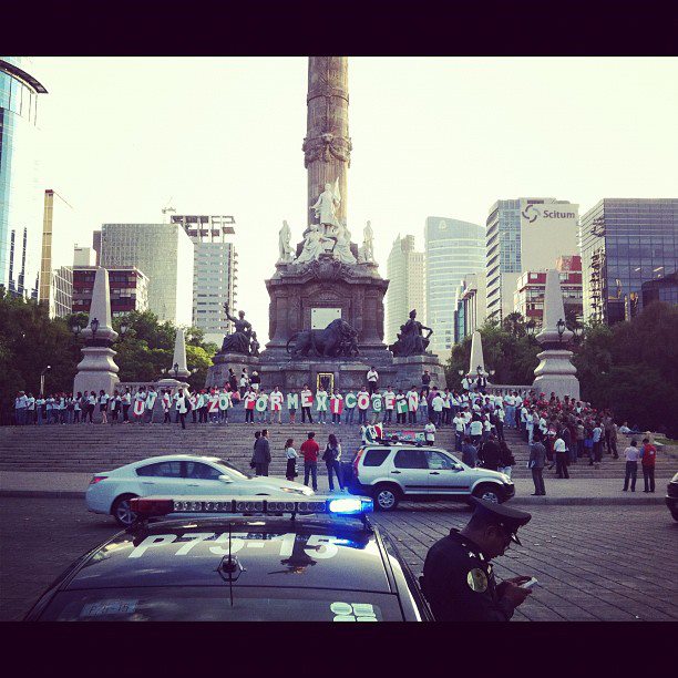 En mantas, cartulinas y consignas, el tema es el "apoyo" de los jóvenes hacia el abanderado tricolor, sobre cuyos hombros pesan aquel "viernes negro" en la Ibero y la animadversión del movimiento #YoSoy132.