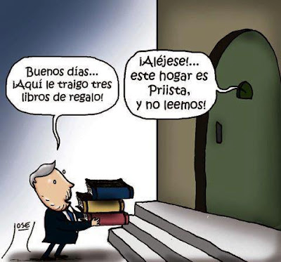 "Las estaban repartiendo en la entrada, pero ha de decir arriba Peña Nieto, ¿no?", completa la señora Gabina.