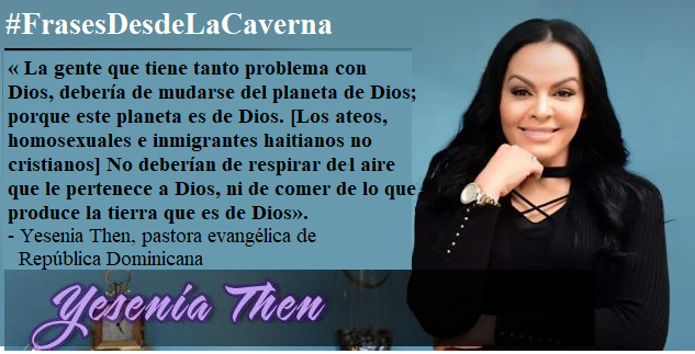“Si sacan a Dios del Escudo y la bandera dominicana en este país va a venir un terremoto, que va a matar a miles, no cientos, miles de gentes morirán por ustedes. Porque a ustedes se les metió el Diablo. Porque solamente a una gente que se le meta el Diablo es que quieran sacar a Dios de los lugares,” argumentó Peña.